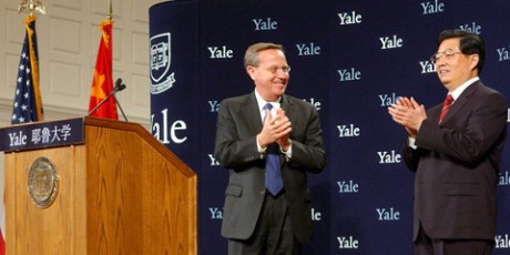 Yale University President Richard C. Levin and Chinese President Hu Jintao