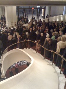 Having decided beforehand not to write about tonight’s gala at the Metropolitan Opera, knowing that something so sensational will be sufficiently covered by others, I’m going back on that slightly. When James Levine came out to accept the warm applause motivated partly by his welcome return from cancer surgery, he then turned to the orchestra, there was a big drum-roll as everyone stood, and the National Anthem began. Hearing thousands of opera-goers sing that at a time of national turning-point — of great crisis, even — was very moving, even for one who does not automatically turn himself over to nationalistic sentiment.