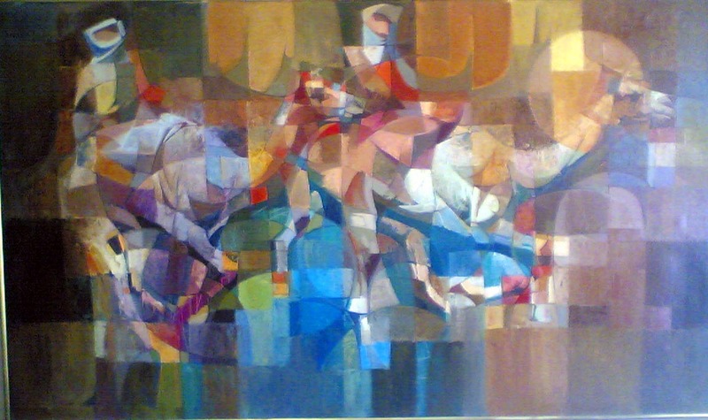 When the artist Josh Siegel displayed his latest painting, I admired it greatly. His early orientation had been to abstract impressionaism, but he had lately been mostly a figurative painter. The picture illustrated above is his first abstract in a decade. One speculates as to what effect current digital facilities for graphic creation had on this (to my mind, very fine) stylistic departure. His more usual stock-in-trade can be seen here.