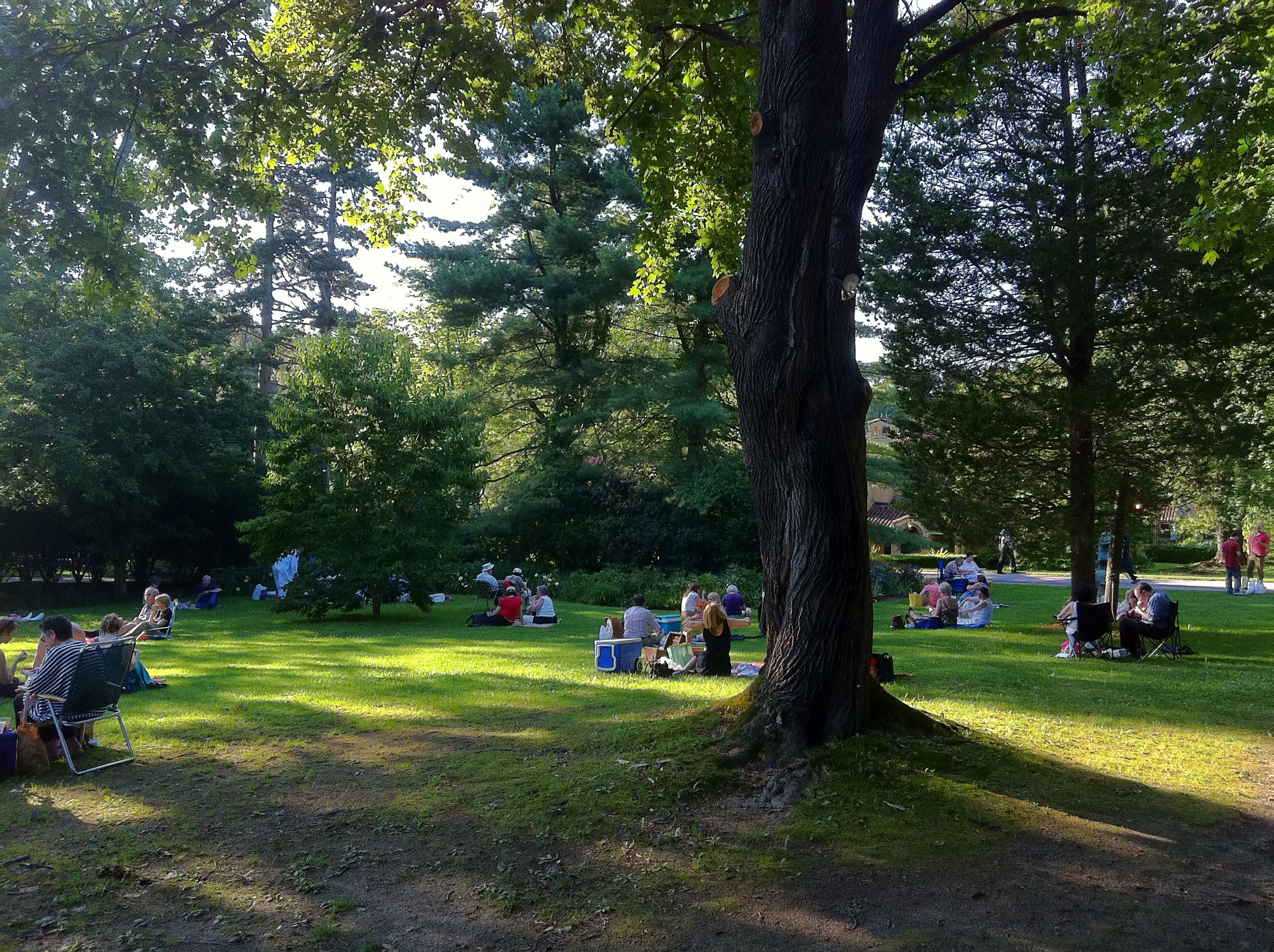 Having heartily recommended the delights of Caramoor last week, I thought it meet and right to report on my trip thither for the first of two William Tell performances. First, the ambience, which unsurprisingly gave glimpses of the highest earthly felicity in the form of all sorts of people peacefully assembled, in groups and couples, over leisurely picnics. There were hundreds of them in all the kinds of settings that the estate affords.