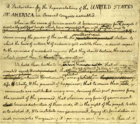 When in the Course of human events it becomes necessary for one people to dissolve the political bands which have connected them with another and to assume among the powers of the earth, the separate and equal station to which the Laws of Nature and of Nature’s God entitle them, a decent respect to the opinions of mankind requires that they should declare the causes which impel them to the separation.