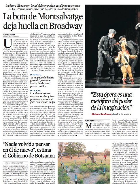 The principal daily, La Vaguardia devoted a lot of space to the New York production of Puss and Boots.